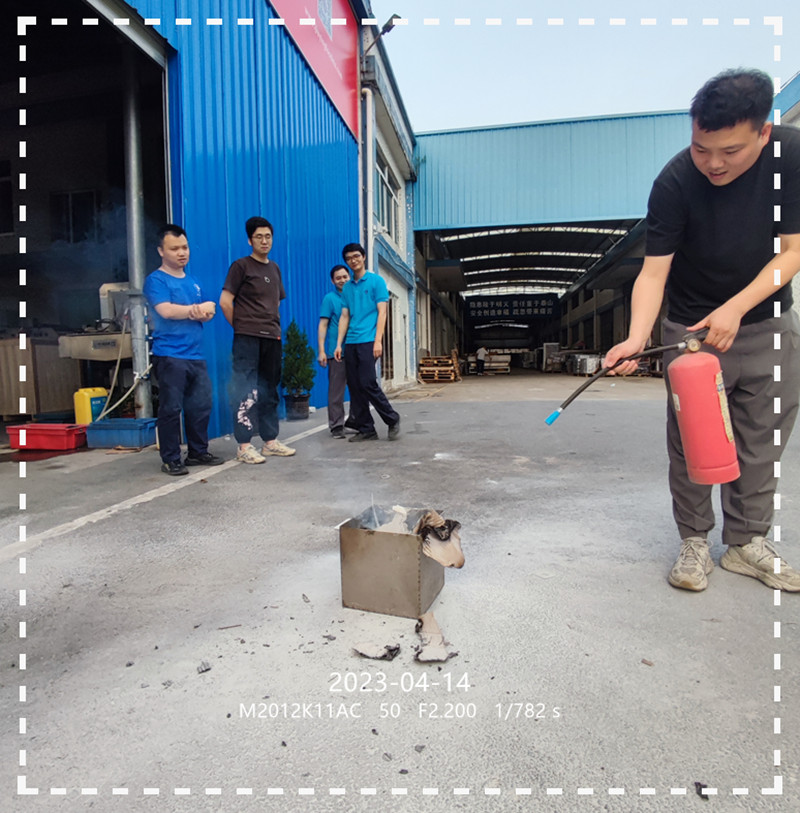 更新時間:2023-4-14 點擊:929次2023年4月14日;九(jiǔ)盈機(jī)械(xiè)集(jí)團公司與榴莲视频下载包裝機械公司,在工廠園區進行了消防滅火實操演練及消防(fáng)安全知識培訓(xùn);各班組消防安全員現場模擬火源被發現;及(jí)時應對;及時滅火,同時培訓了(le)大風環境下如何滅火及疏散撤離;等實操項目;旨在提高消防安全意識;增強消防滅火實操技能;保障廠區安全生產穩定;