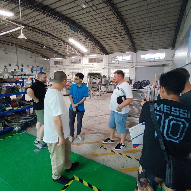 我們(men)公司根據外商客戶采購需求及定製技術要求;分別進行了現(xiàn)場設備試(shì)機實操;生產線流程設計;包裝設備成品展示;以及參觀生產裝配車間(jiān)和製版車間。