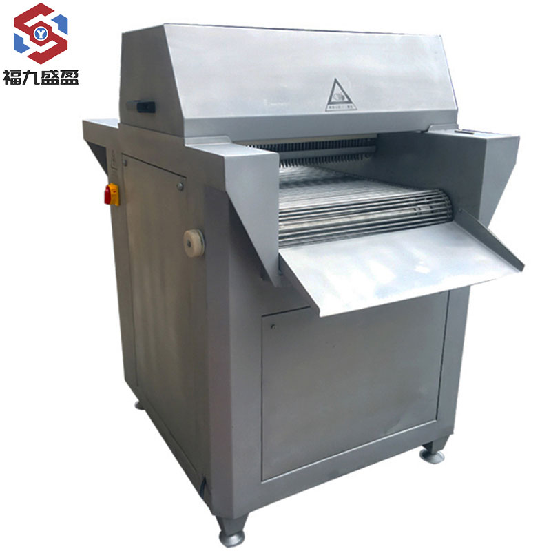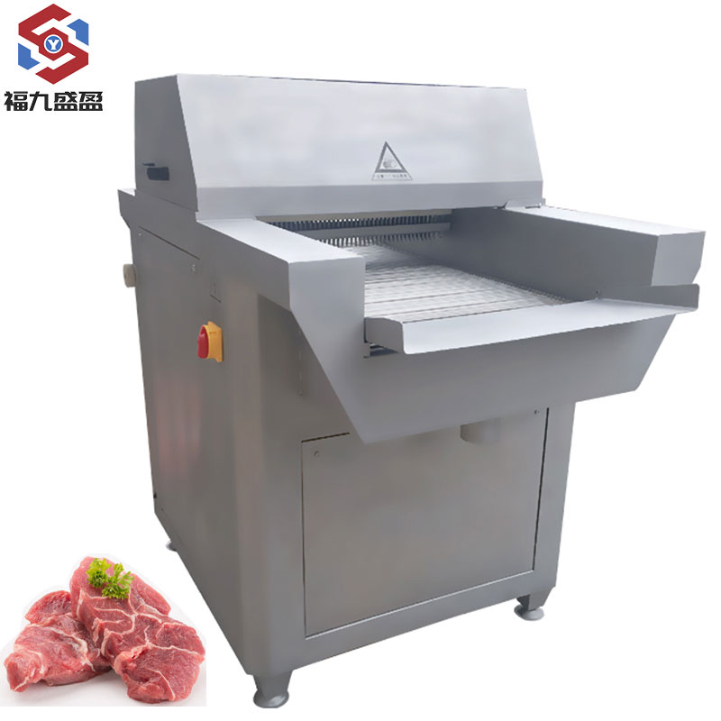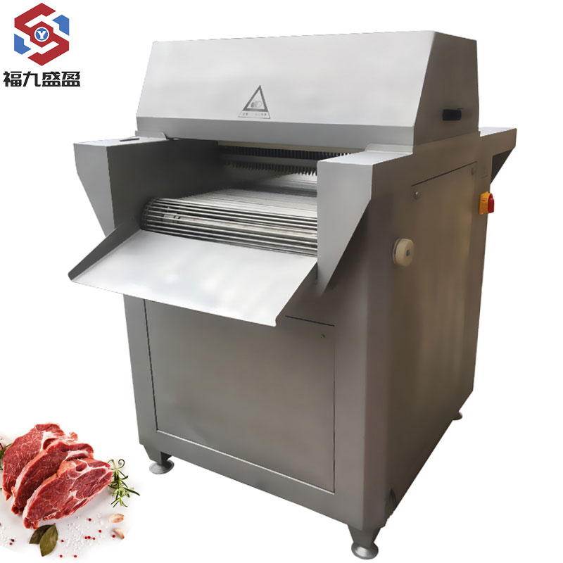 簡 介:FJY-980斷筋機是采用(yòng)目前(qián)國際(jì)先進的齒形步進技術,嫩肉效果好、使用方(fāng)法zui簡單(dān)、工藝佳、效果好的(de)嫩肉機械產(chǎn)品(pǐn),斷盤機的(de)嫩肉原理是源自歐美相關工藝設計理念並提煉升華:利用高密度的特別設計(jì)斜(xié)切細小刀鋒對所加(jiā)工牛肉進行深度纖維瞬間切割,從而從(cóng)不同角度破壞(huài)其肌纖組織,以達到較佳的嫩化狀態,而不改變(biàn)牛肉的外(wài)形。斷筋機適(shì)合工業化、及各種類型的肉類食(shí)品從業者、牛排加(jiā)工(gōng)廠、肉類精加(jiā)工等生產工(gōng)藝流程。此規格上下頻(pín)率不可調,另有帶(dài)變頻器,上下頻率可調,是理想的一款斷筋(jīn)嫩化設(shè)備!