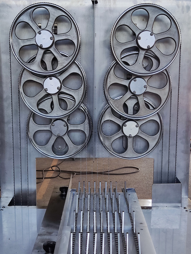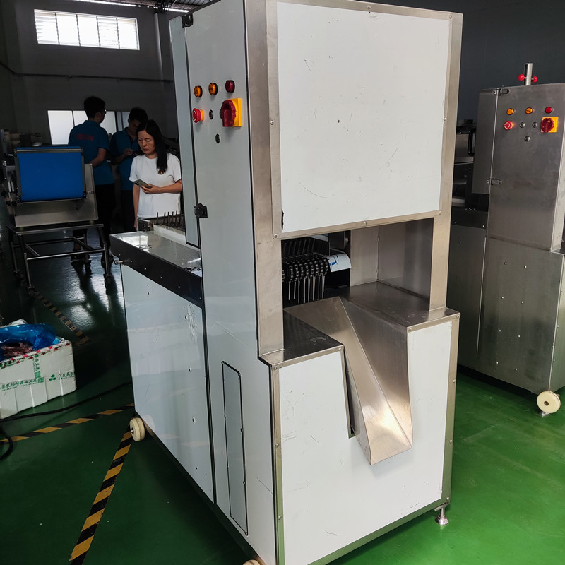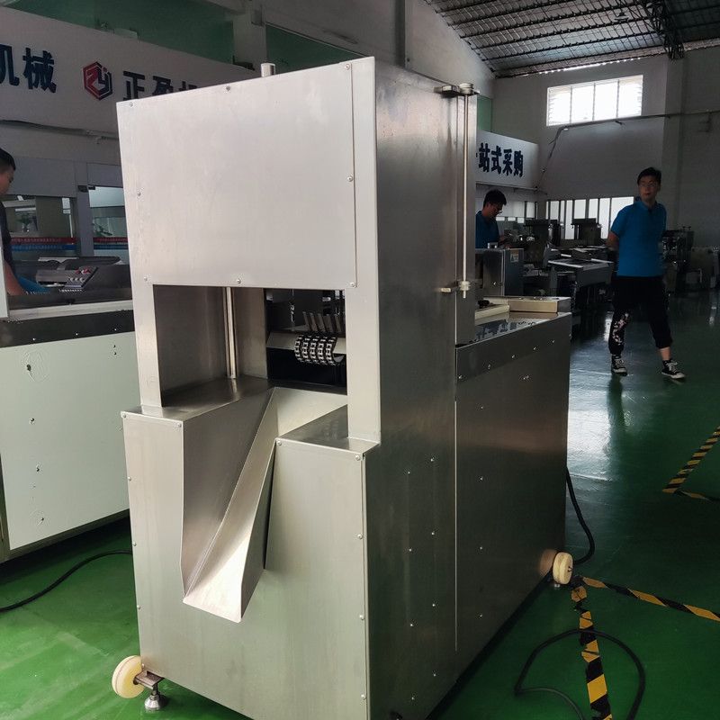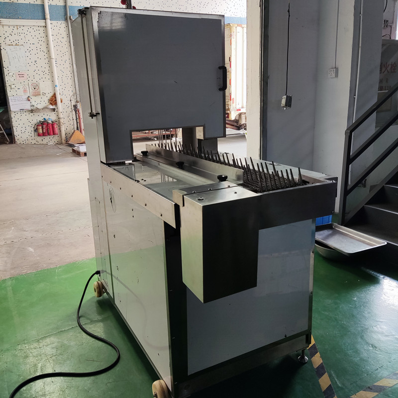 多段(duàn)鋸多鋸條鋸骨(gǔ)機 (簡稱五段鋸鋸骨機)是由我公(gōng)司(sī)自(zì)主(zhǔ)研發(fā)、設(shè)計(jì)製造的一款多用途高產量的冷凍食品切割設備;依據市場客戶需求及吸納台灣及德國全自動鋸骨機和立式鋸骨機的特點優勢;全新設計開發了(le)一款更具有人性化、智能化(huà)、實用性綜合高效產能的鋸骨機設備。