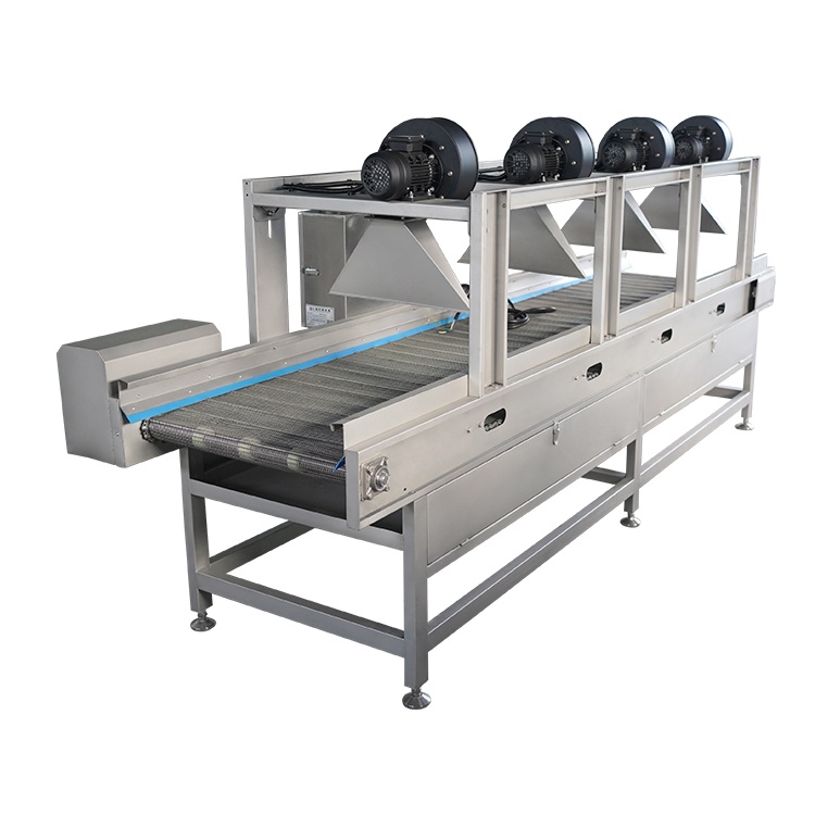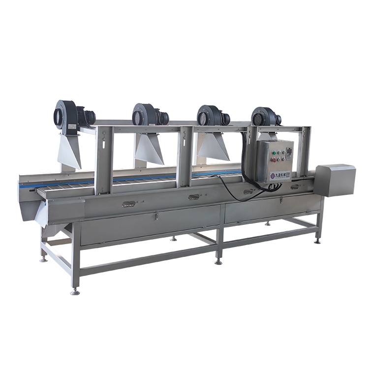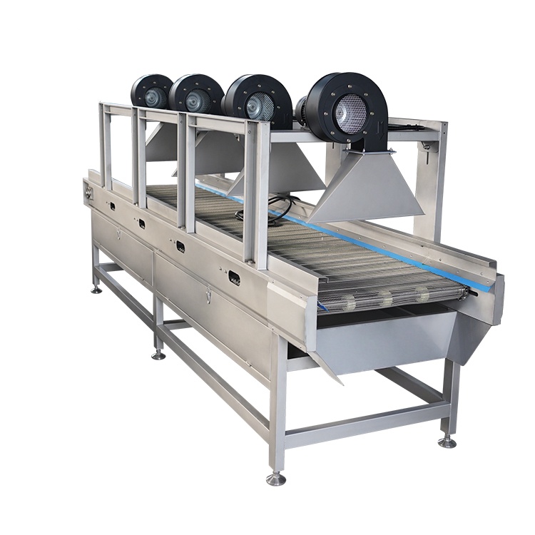 本機主要適用(yòng)於食品加工企業使用(yòng),該設備有結構(gòu)簡(jiǎn)潔、風幹效果好、不破壞蔬菜(cài)內部營養成分的特點,分滾杠和網(wǎng)帶(dài)式兩種。在淨菜生產線中是不可或缺的風幹設備,滿足生(shēng)產的自動化的需要。該機具有操作簡便、結構緊(jǐn)湊、造型美觀(guān)、維修方便等優(yōu)點。